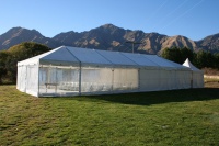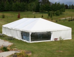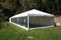 Clipframe Marquees are available in two sizes, 6m wide and expandable in length by 3m sections, or 10m wide and expandable in 5m sections.