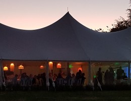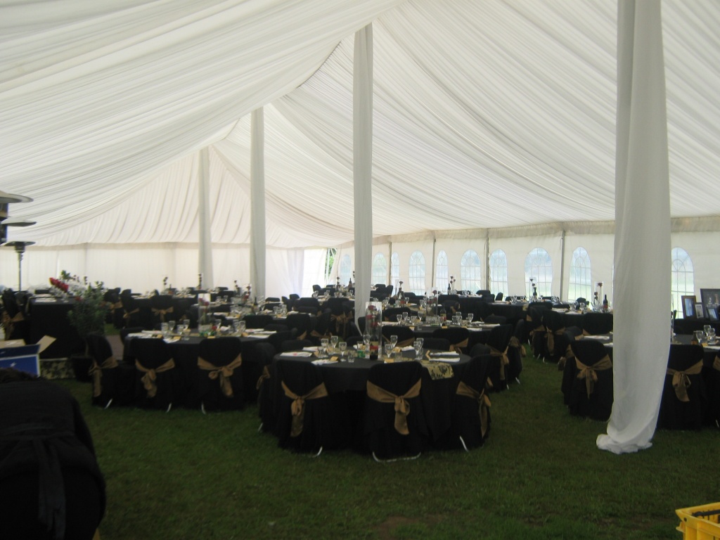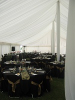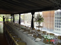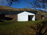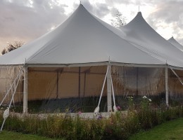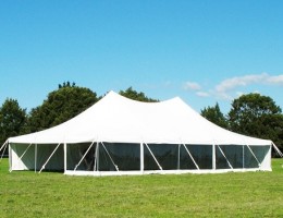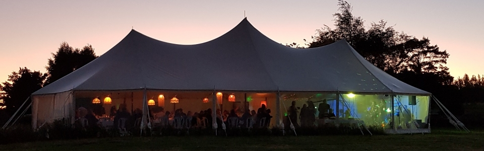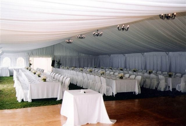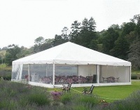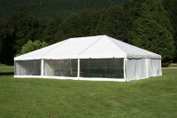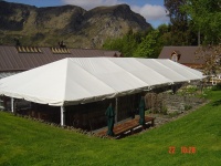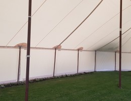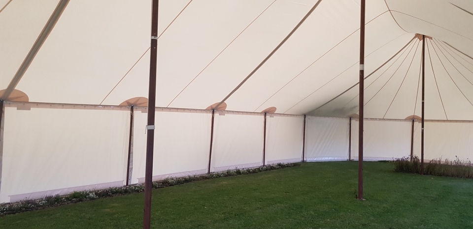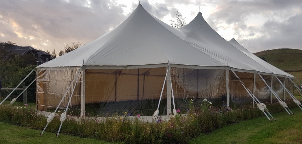 Our Electron Marquees are a traditional peg and pole design, they have an elegant roof shape and are available with white silk linings and clear walls.